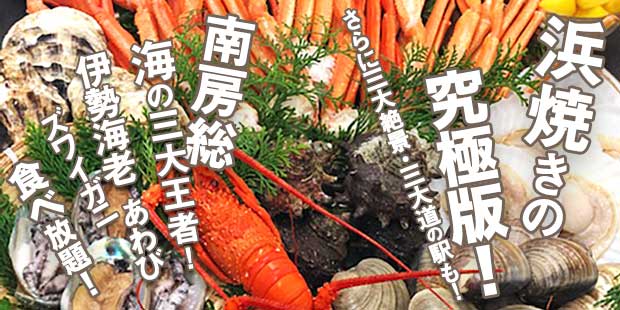 浜焼きの究極版!南房総海の三大王者(伊勢海老・あわび・ズワイガニ)食べ放題! - 房総3大海の幸&3大絶景(千倉のお花畑・崖観音・原岡桟橋)&3大道の駅(ちくら潮風王国・保田小学校・とみうら枇杷倶楽部)を1日で満喫!