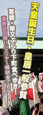 天皇誕生日・皇居一般参賀と葛飾・柴又ぶらり下町食べ歩き! - 葛飾区日帰りバスツアー補助金で通常9,990円が6,990円!