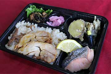 【夕食】 きのこの天ぷら・焼き魚など「大好評!地鶏照焼ききのこ飯弁当」で仕上げ!