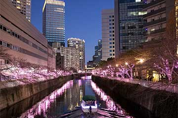 冬の夜空に煌く目黒川夜桜イルミネーション貸切観賞クルーズ!