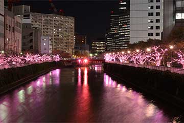 目黒川沿いに煌く約38万球の冬桜イルミネーション