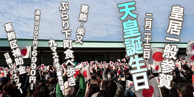 天皇誕生日・皇居一般参賀と葛飾・柴又ぶらり下町食べ歩き! - 葛飾区日帰りバスツアー補助金で通常9,990円が6,990円!