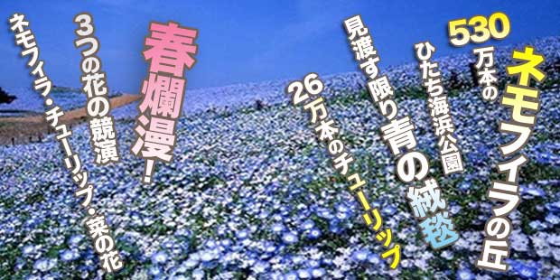 ひたち海浜公園「530万本のネモフィラの丘」&約26万本のチューリップや菜の花もお楽しみ! - 見渡す限り一面に広がる「青の絨毯」!春爛漫3つの花の競演!