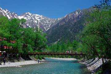- マイカーでは行くことのできない信州を代表する人気№1の景勝地上高地。清流梓川の上流に位置する大正池や河童橋などの散策では、標高3,000㍍級の穂高連峰そして焼岳などの名峰に囲まれた日本有数の大パノラマを楽しむことができます。