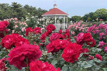 北関東最大級のローズガーデンに約600種、約7,000株のバラが咲き誇る。世界の殿堂入りのバラを全て見ることができるほか、バラの産地でもある前橋のオリジナルのバラも観賞できる。食事